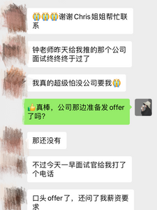 P同学的家长非常担心他的失业期时间,参与了我们整个对接过程,也很开心给到了一个满意的交付,我们也有信心和把把握给他推出满意的全职,这才是我们的final goal。